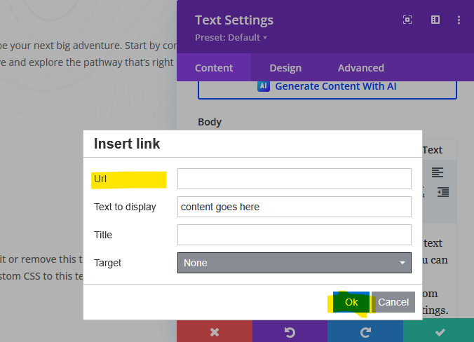 Divi makes it easy to add links, but depending on what you’re editing, the steps are slightly different. Below are the three main ways you’ll add links: Text Editor, Buttons, and Modules.